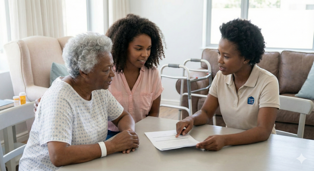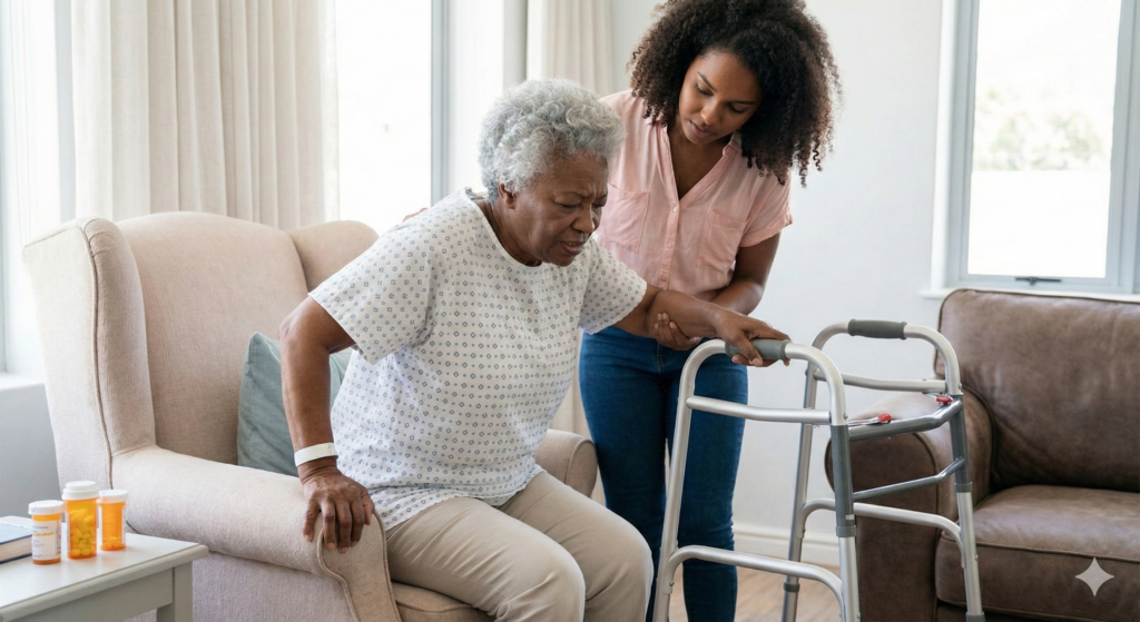 The danger lies in this gap. A senior may be sent home because their incision is healing nicely, yet they lack the physical strength to walk to the kitchen. This is where families are expected to step in, often with little training, no equipment, and high anxiety.
